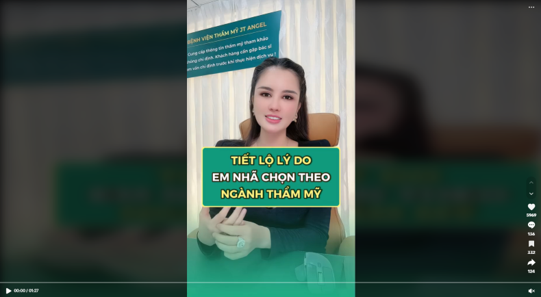 Chẳng hạn, TS BS Tú Dung của Bệnh viện Thẩm mỹ JW Hàn Quốc là một gương mặt quen thuộc trong việc chia sẻ video tư vấn trên TikTok với hơn 200,000 lượt theo dõi. Các video này thường xuyên nhận được tương tác lớn, lên tới 8 triệu lượt xem, nhờ vào sự chuyên nghiệp và minh bạch.