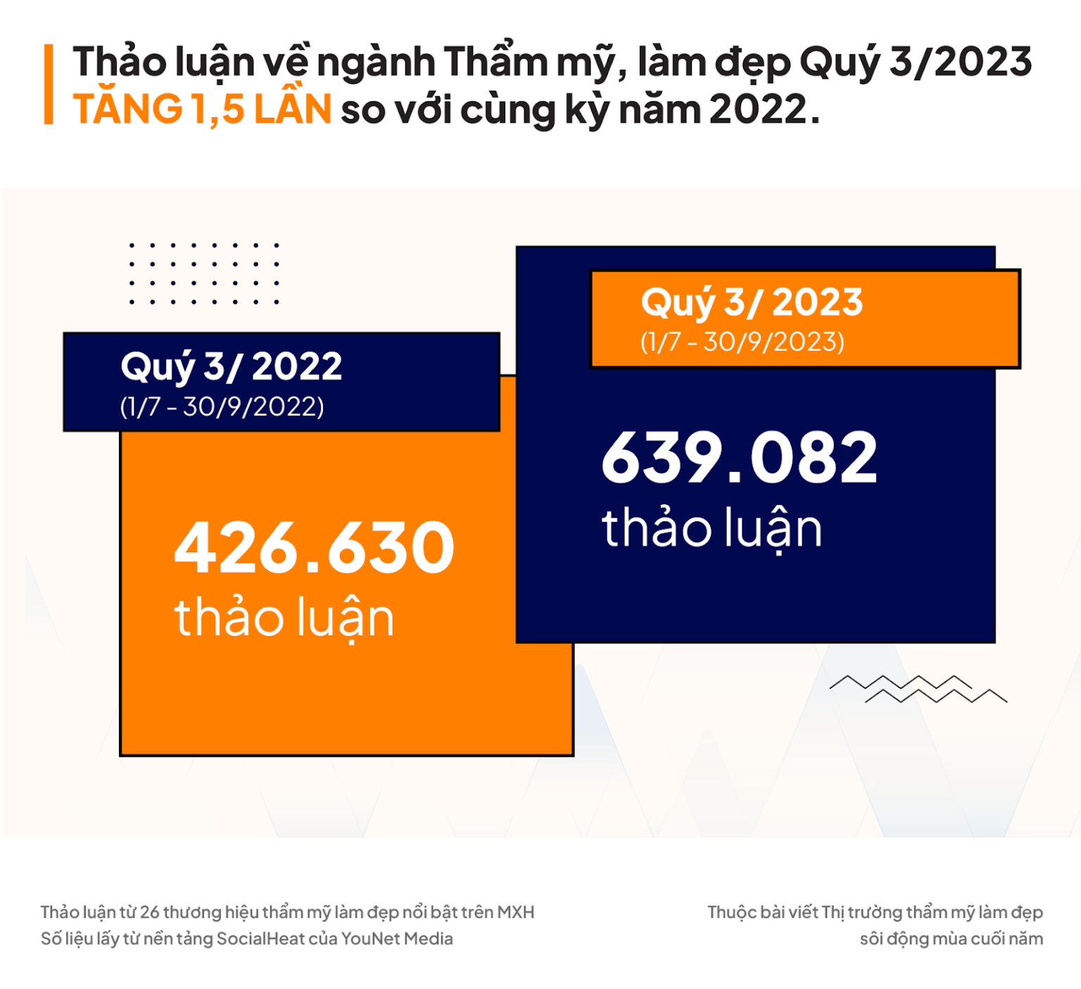 Số lượng thảo luận trên mạng xã hội về các thương hiệu thẩm mỹ viện tăng trung bình 49% mỗi tháng trong 7 tháng đầu năm 2023.