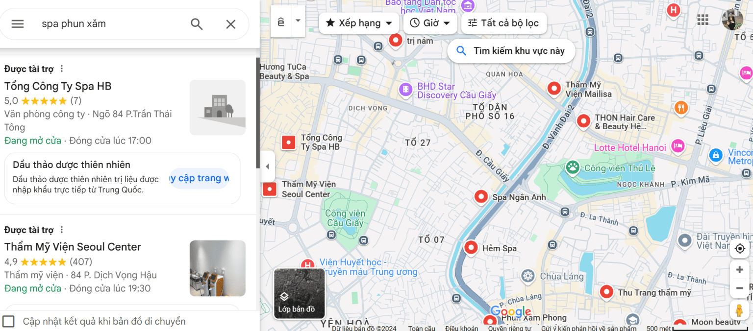 Khi chọn địa điểm làm đẹp, các chị em thường ưu tiên các dịch vụ gần nơi ở hoặc làm việc để tiết kiệm thời gian. Đặc biệt, trong phạm vi bán kính tối ưu khoảng 20km, Google Map chính là một trong những công cụ tiếp cận khách hàng hiệu quả và chi phí thấp nhất.