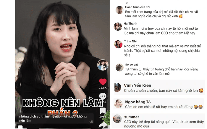 Hơn thế nữa, TikTok còn giúp thẩm mỹ viện xây dựng mối quan hệ gần gũi và thân thiện với khách hàng thông qua các video giáo dục về chăm sóc sắc đẹp, mẹo làm đẹp tại nhà hoặc những thử thách thú vị. Điều này không chỉ giúp bạn quảng bá dịch vụ mà còn khiến khách hàng cảm thấy bạn luôn sẵn sàng chia sẻ và giúp đỡ họ.