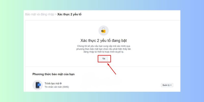Bước 5: Tìm tính năng “Xác thực 2 yếu tố” > “Tắt”.