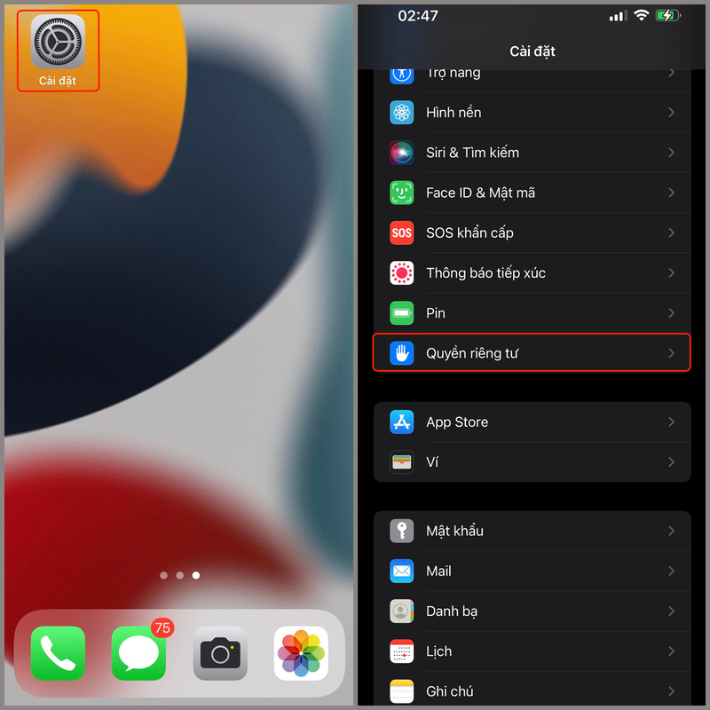 Bước 1: Ttruy cập “Cài đặt”.