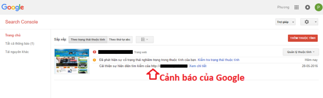 Truy nhập lại trang chủ của Google Webmaster Tool sẽ nhận được cảnh báo thông báo có mã độc: