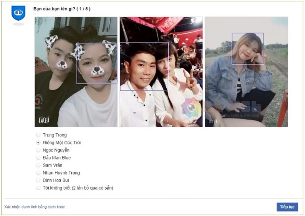 Nếu đây là tài khoản chính chủ của bạn, thì bạn sẽ dễ dàng chọn chính xác tên của bạn bè trong ảnh. Tuy nhiên, đối với người có ý đồ xấu xâm nhập tài khoản, sẽ khó xác định chính xác được vì người trong ảnh không phải bạn bè của họ.