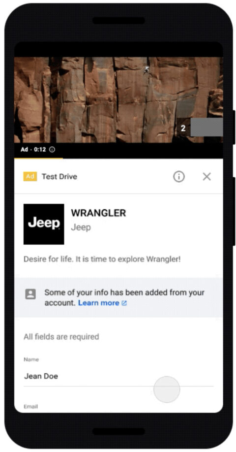 In an initial test of the Lead Form extension on YouTube, Jeep reported that the number of completed leads increased by 10 times.