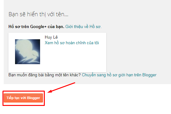 After creating your Google+ profile, click Continue with Blogger.