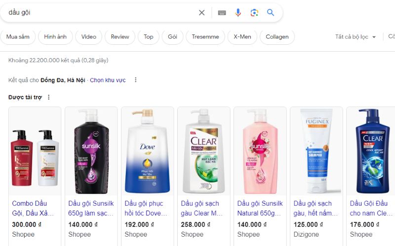 Google Shopping Shopee elevates the online shopping experience for customers by displaying key product information such as name, image, price, and the platform/vendor selling the product. It resembles an online store where users can easily compare prices and shop, reaching more high-quality potential customers since it appears right below the search bar.