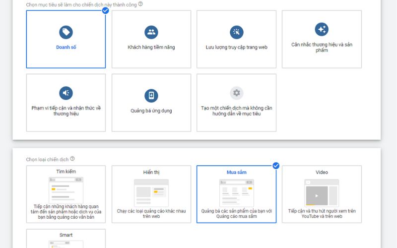 The final step to running Google Shopping Shopee ads is to return to your Google Ads account to create a campaign. Select your campaign objective based on your brand’s goal, choose the “Shopping” campaign type, select Vietnam as the country, and optimize your ad campaign as usual.