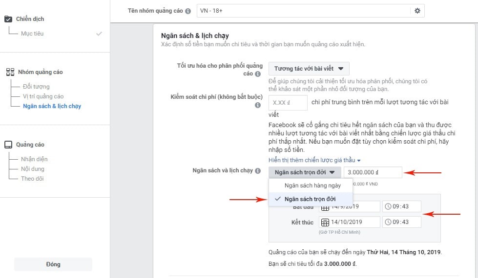 - Set schedule: You can select the start and end times for your ad campaign.