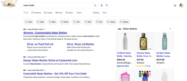 Google Ads is the ideal choice for capturing demand – meaning reaching users with a high intent to purchase. For example, if I’m searching for the keyword “water bottle,” it may indicate that I’m interested in buying one.