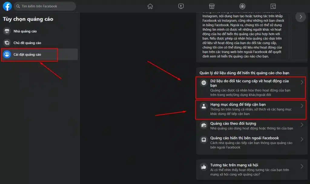 Step 2: In this section, you’ll find two smaller categories: Data provided by partners about your activity and Your Interests. Simply turn off any information you don’t want Facebook to use for ad targeting.