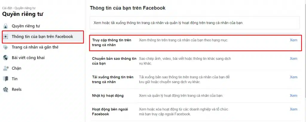 - Step 1: Go to Settings, select Your Facebook Information, and click View (Access Your Information).
