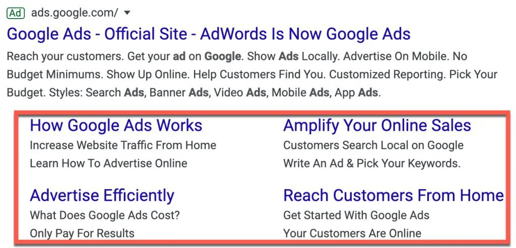 Ad extensions are Google Ads features where advertisers add important information related to the product, business, or other relevant content associated with the ad.
