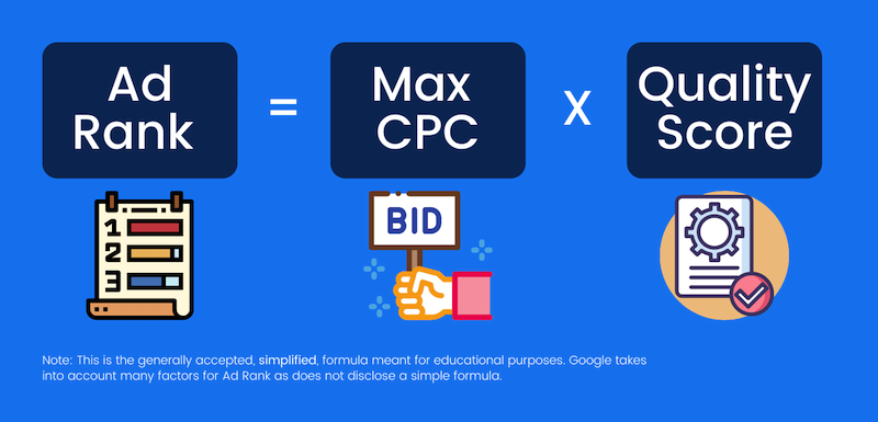Ad Rank = CPC Bid × Quality Score × Ad Rank Threshold × Context of Search × Ad Extensions & Format