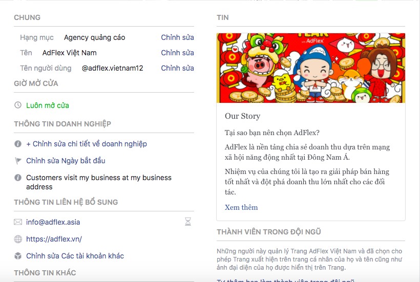 The “About” section is one of the first things users will check when visiting your Fanpage. The information here helps users understand your business and the products or services you offer. This section plays a significant role in deciding whether visitors will stay or leave your page. To optimize the “About” tab, follow these guidelines: