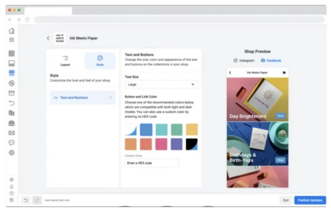 Khi đã thiết lập xong các thông tin cơ bản. Bạn sẽ bắt tay vào thiết kế cửa hàng di động của mình. Facebook Shops hỗ trợ các chỉnh sửa cơ bản đối với bố cục và phong cách của Shop.