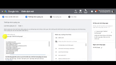 Cài đặt nhóm từ khóa quảng cáo
