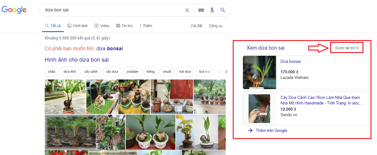 Khi nhìn kỹ bạn sẽ thấy các nội dung này có chữ “Quảng cáo” hoặc “Được tài trợ” thì đây chính là quảng cáo từ phía Google.