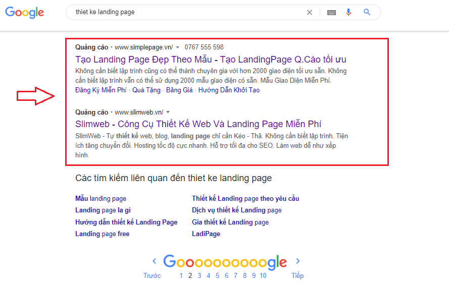 Tức là khi bạn tìm kiếm một nội dung nào đó ở Google thì ngoài các kết quả hiển thị tự nhiên sẽ có 3-4 kết quả mà Google quảng cáo đến cho bạn.