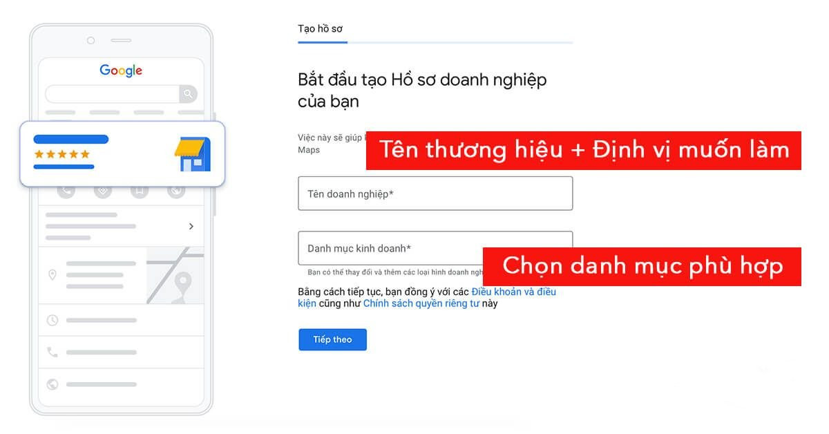 Bước 2: Điền thông tin theo hướng dẫn của Google và hãy lưu ý những điểm sau.