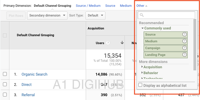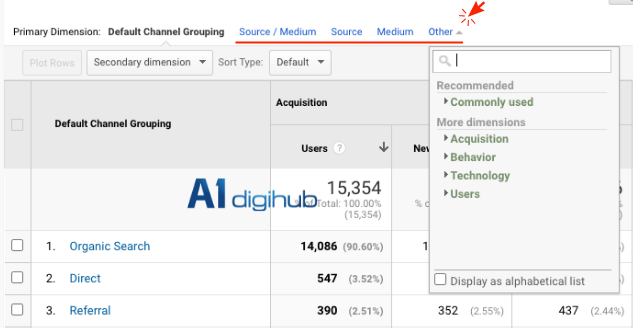 Ngoài ra, Source/Medium hay những Thứ Nguyên khác nằm trong mục “Other” cũng là một Primary Dimension,